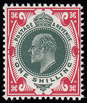 SG314 1912 1/- Green and carmine. Superb unmounted, original gum example.