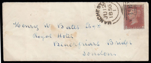 SG29/ 33 1855 1d. Red-brown on neat envelope Manchester to London.