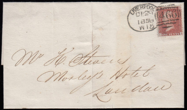 SG29/ 33 1856 1d. Red-brown pl. 32 (CB) on entire detailing an accident.