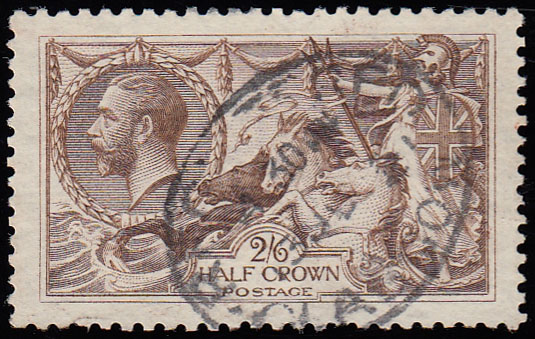 SG413a 1918 2s. 6d. Olive-brown. Bradbury “Sea Horse”.