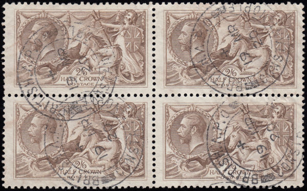 SG413a 1920 2/6d. block of four Bradbury Wilkinson British A.P.O Constantinople cds’s.