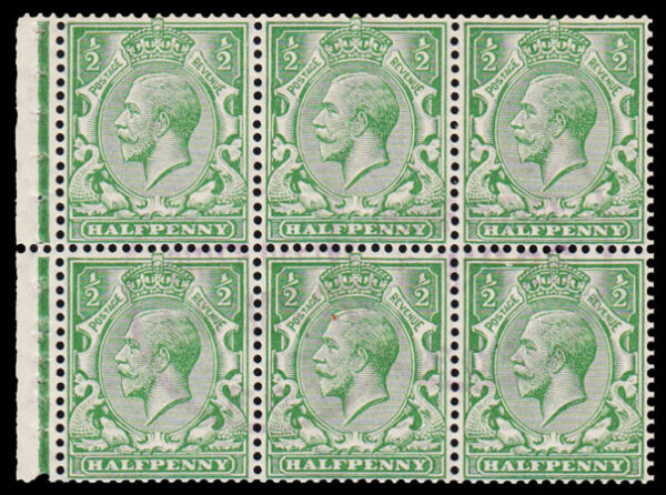 SG418dw 1924 ½d. Green. Watermark Block Cypher Inverted. Cancelled “London Chief Office” Type K in Violet.