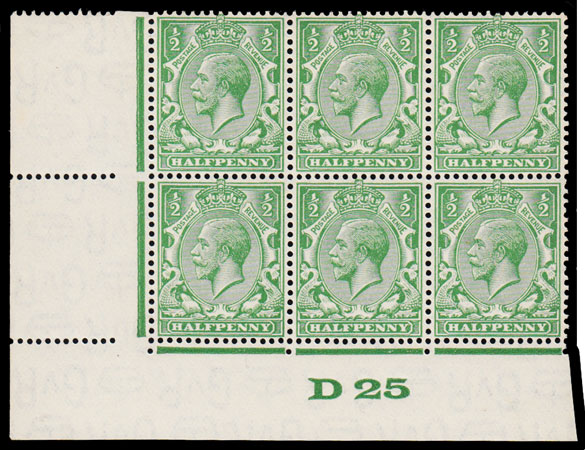SG418Wi 1924 ½d. Green. Watermark Block Cypher Inverted. Superb u/m “D 25” control block of six.