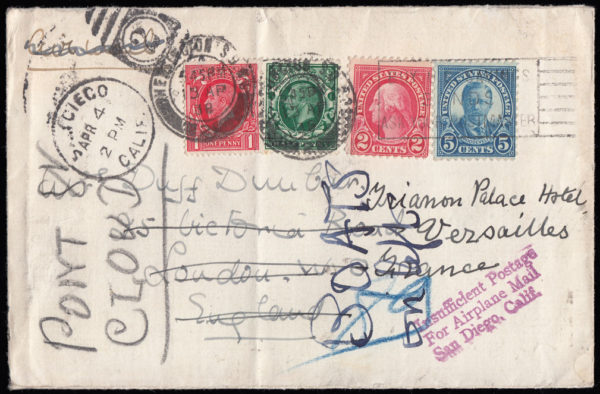 SG440 1938 USA to London then re-directed with photogravure ½d, 1d. to France.