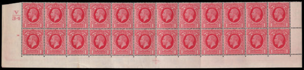 SG440 1935 1d. Scarlet. “Photogravure”. Fine o.g. control “Y/36” cylinder 54 dot block of six.