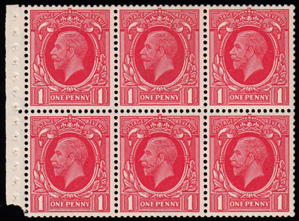 SG440var 1935 1d. Scarlet. “Photogravure”. Intermediate Format. Superb unmounted .g. control “V/34” cylinder 24 no dot block of six.