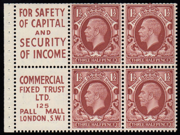 SG441e 1935 1½d. Ad. pane no.3 INTERMEDIATE FORMAT. Lightly mounted mint.