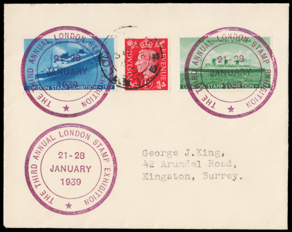 SG463 1937 1d. Scarlet. The Third Annual London Stamp Exhibition 21st – 28th Jan 1939.