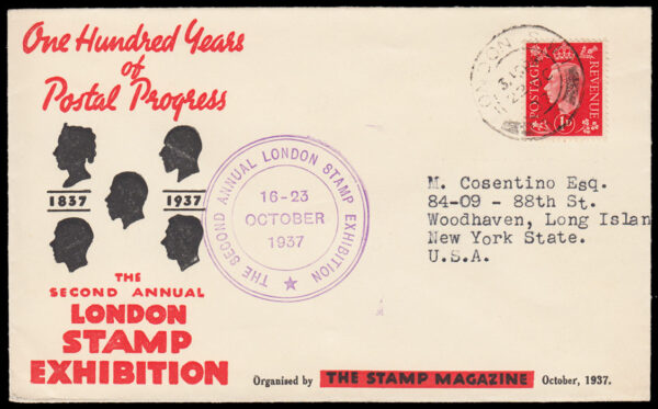 SG463 1937 1d. Scarlet. The Second Annual London Stamp Exhibition 16th – 23rd Oct. 1937.