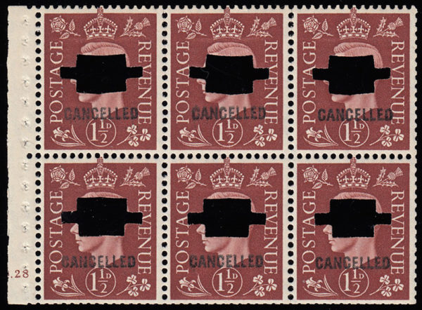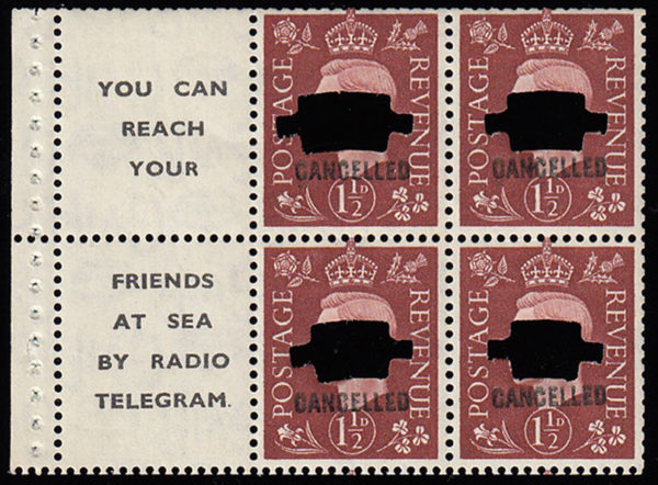 SG464cw 1937 1½d. Advert pane no. 12 CANCELLED type 33p, Inverted Watermark.