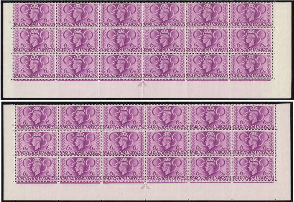 SG497 1948 Olympics 6d. value with two cylinder blocks of 18.
