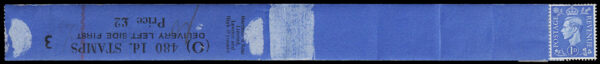 SG504a 1951 1d. Light Ultramarine. Watermark Sideways. Coil Leader. Left Side Delivery Code “O”. One stamp Attached. Cat. £30.