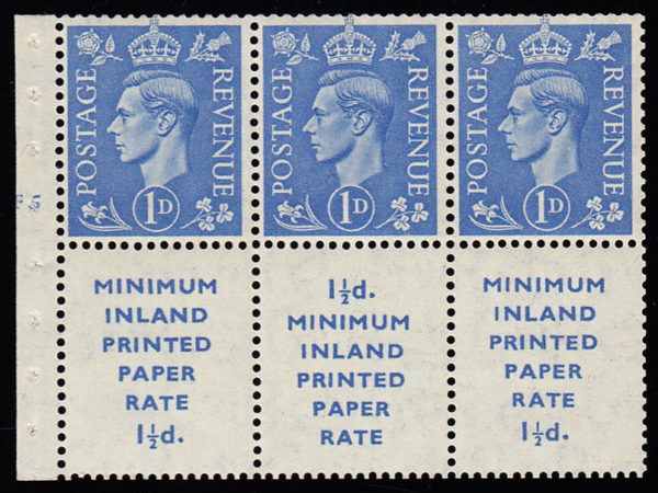 SG504d 1952 1d. Light ultramarine, Advert pane (17mm) cylinder F5, no dot pane.