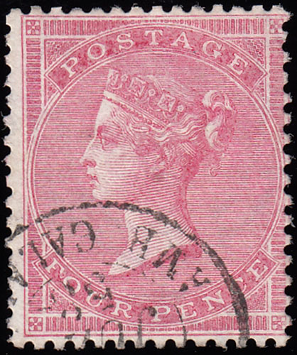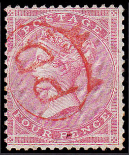 SG66 1857 4d. Rose-carmine. Inspector’s Handstamp.