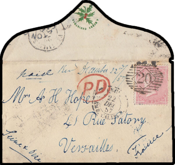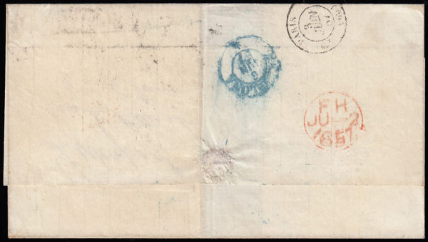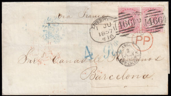 SG66 1857 Philadelphia to Liverpool, then forwarded to Paris with a pair of 4d’s.