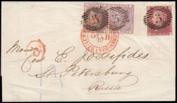 SG68 1860 Entire from London to St. Petersburg, dated OC.27.1860.