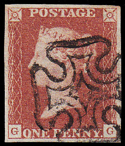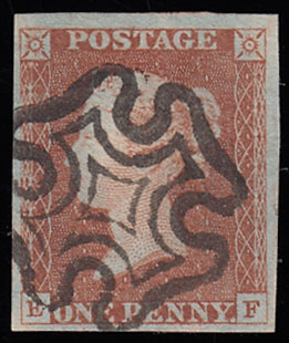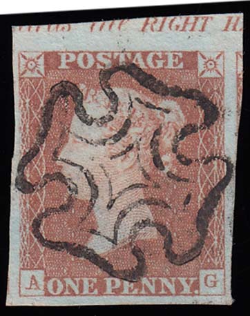 SG7 1841 1d. Red-brown, plate 1b, AG. A brilliant marginal example with perfect black maltese cross.