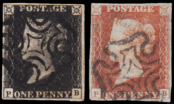 SG2 & 7 1840 1d. Black Pl.10 (PB). Matched with the printing in Red.