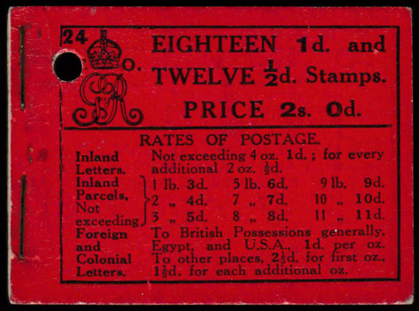 SGBB6 1913 Royal Cypher 2/- Red, ed. 24, AVC pre-cancelled type I.