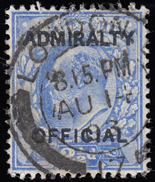 SGO105 1903 2 1/2d. Ultramarine Admiralty Official, type 1. Fine used, fresh colour.