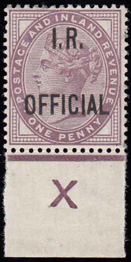 SGO3 1882 1d. Lilac Inland Revenue OFFICIAL. A fine mint original gum U Control example.