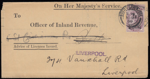 SGO3 1900 1d. Lilac I.R Official on OHMS “Advice of Licences Issues” form.