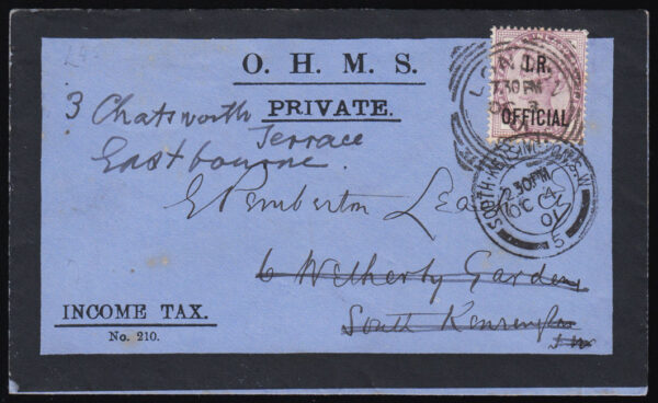 SGO3 1900 Railway Station postmarks. Inland Revenue Official on OHMS cover, used within Dover.