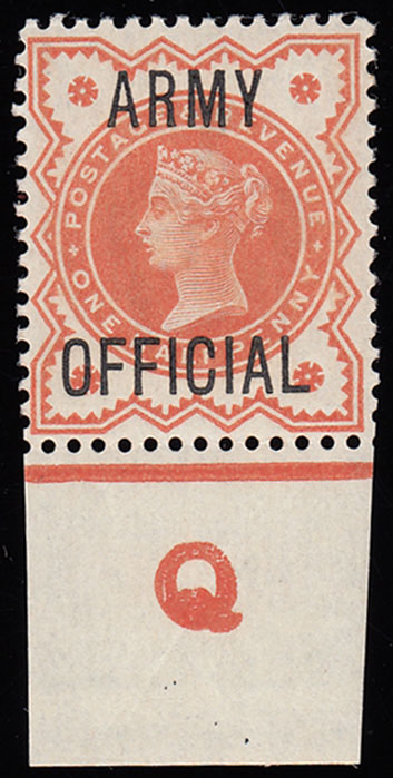 SGO41 1896 1/2d. Vermilion Army Official. Very fine, original gum Q Control example. Scarce.
