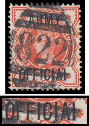 SGO41avar 1896 ½d. Vermilion ARMY OFFICIAL “Short foot to L”.