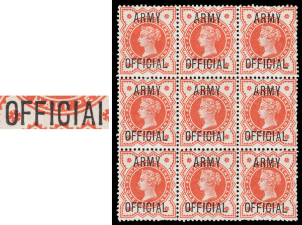 SGO41a 1896 ½d. Vermilion. “ARMY OFFICIAL”. Variety “OFFICIAI” (R. 13/7).