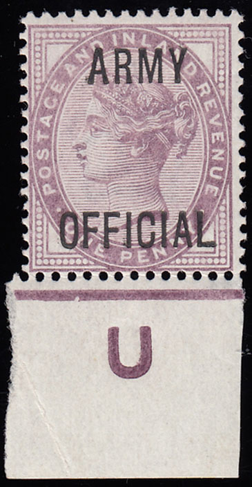 SGO43 1896 1d. Lilac ARMY OFFICIAL very fine, unmounted Control U example. Scarce.