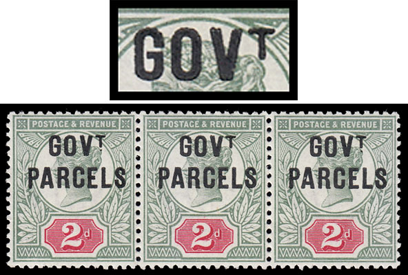 SGO70/ SGO70a 1891 2d. Jubilee Govt. Parcels. Very fine unmounted, original gum strip of 3..
