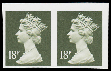 SGX955a 1984 18p. Deep Olive-grey. Phosphorised Paper. Imperforate Horizontal Pair. Superb unmounted o.g. Cat. £150.