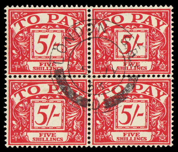 Superb used block of four cancelled by a single strike of the LONDON S.E.1. c.d.s. for 5. JY. 56. Cat. £128 as singles.