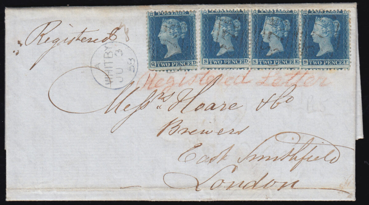 With 2d. x3 paying registration and 2d. paying postage, dated JU.3.58. Attractive.