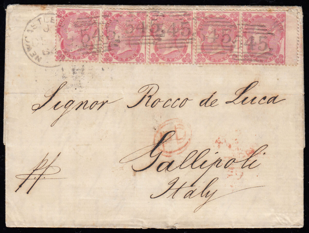 Sent from Newcastle upon Tyne. A scarce 1/3d. rate.